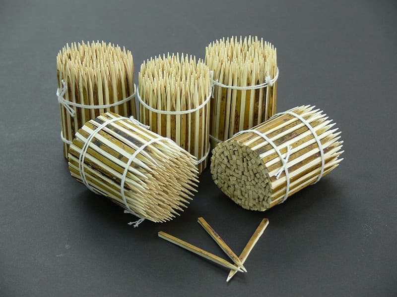 一般に普及している白樺を材料とする爪楊枝と違い、毛羽立たないため、使い心地がよく、刃が「すーっ」と通るような感触があります。また、見た目の高級感はもちろんのこと、非常にしなやかで、弾力性があり、折れにくいのが特長です。和菓子に添えられて出されると高級感が増し、喜ばれます。