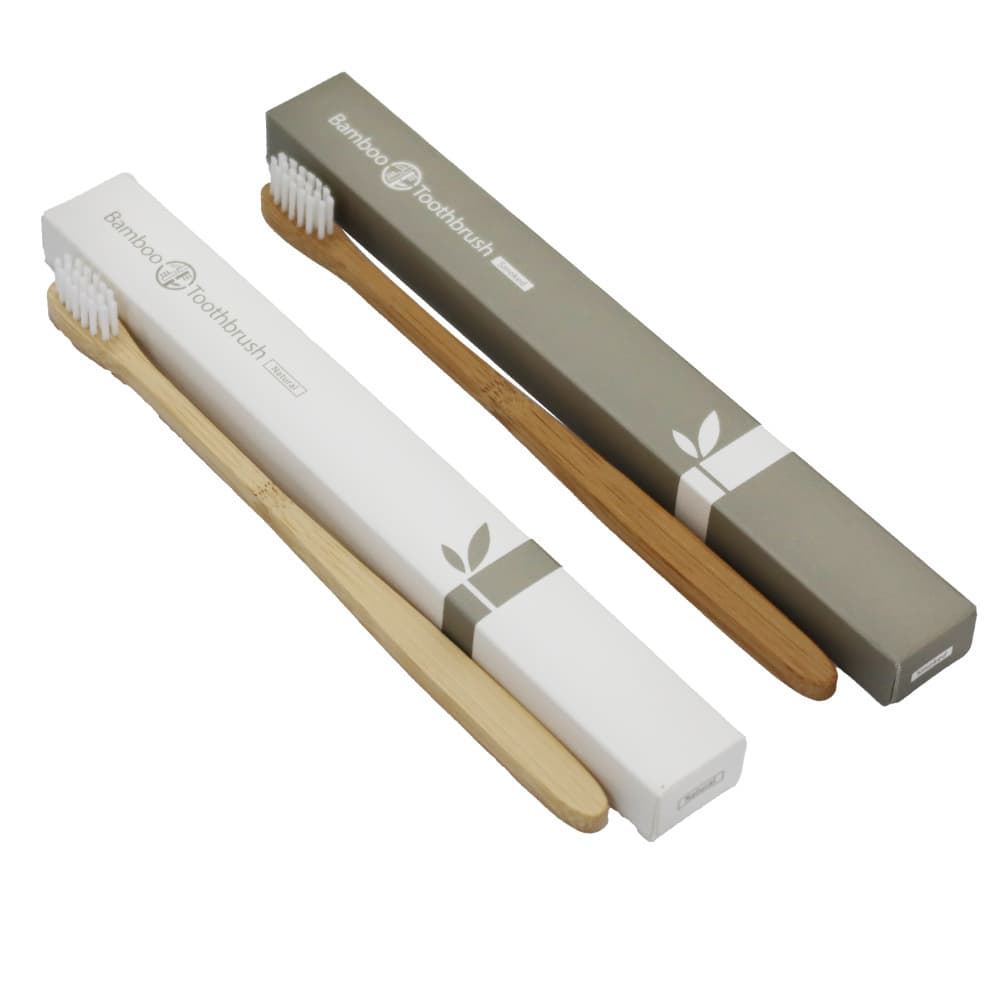 プラスチックごみとして排出される歯ブラシを、竹製に置き換えた「竹歯ブラシ」。形状は、平たい柄の「平型」の他に、柄が丸い「丸型」をご用意。丸型は、柄の部分に漆塗りを施して、彩りと高級感を演出します。また、丸型は子供用サイズもご用意しております。