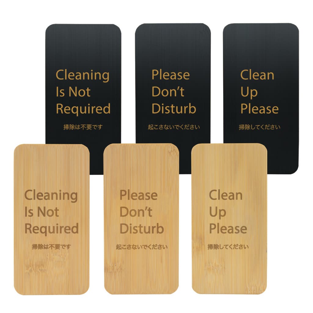 竹製のアメニティと部屋の雰囲気を合わせられる様に、との要望で作られた竹製の客室装備品です。素材の雰囲気をそのまま生かしたナチュラル仕上げと、落ち着きのある部屋によく合うブラック仕上げの2タイプをご用意。卓上備品のカップやタンブラーは名入れも可能ですので、お土産として販売もできます。